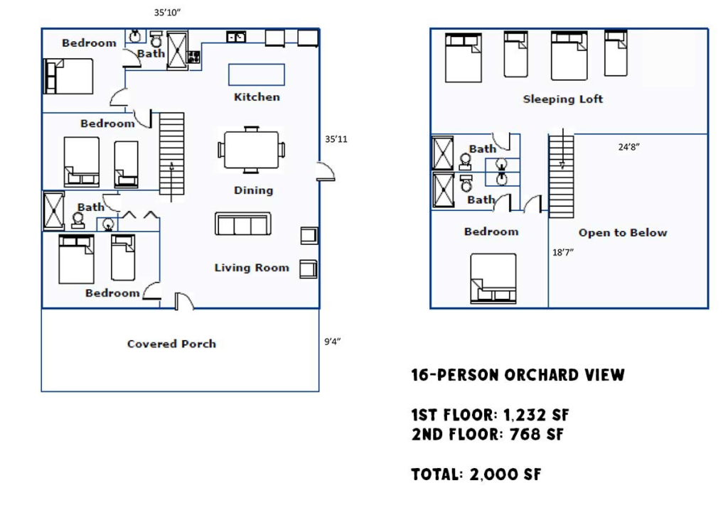 Max Occupancy: 16• Loft-style cabin